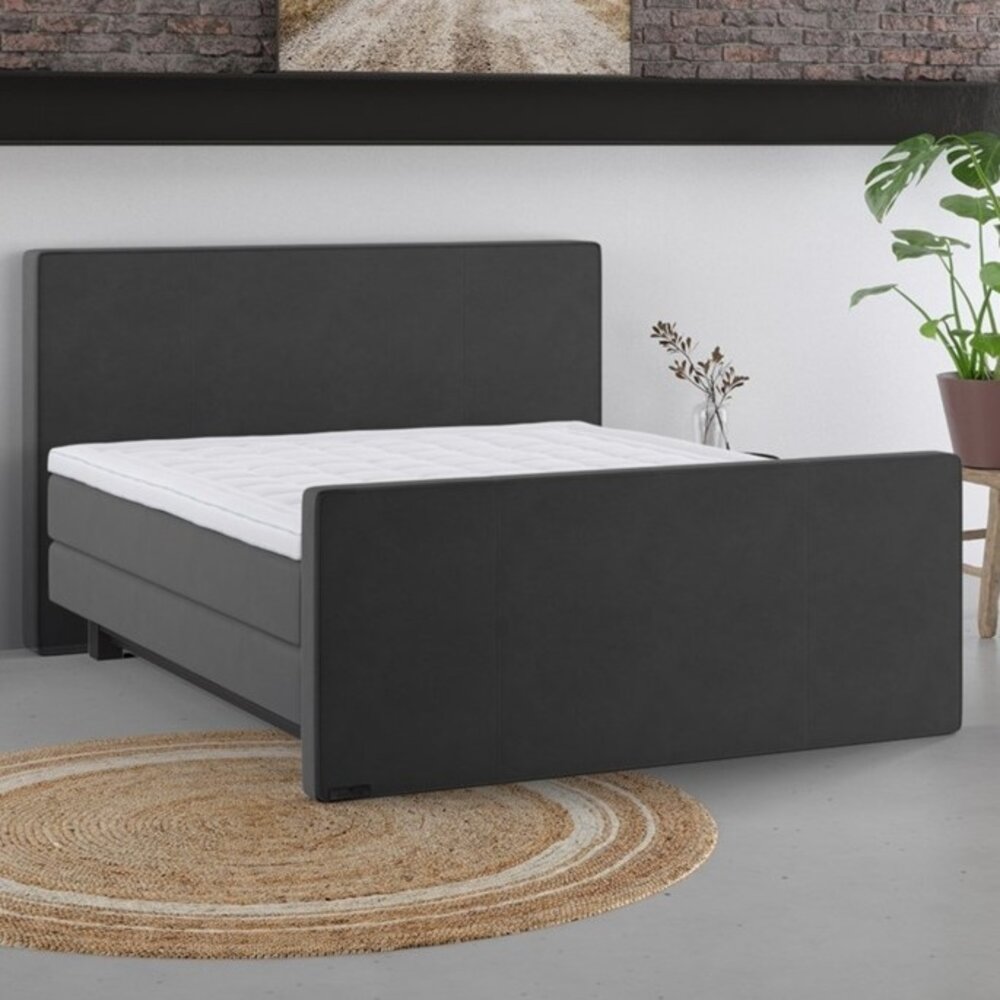 Boxspring 6060, 180x210, Stof: Rough Midgrey, Pocket-1000 medium/firm, Topper: 735 - Showmodel